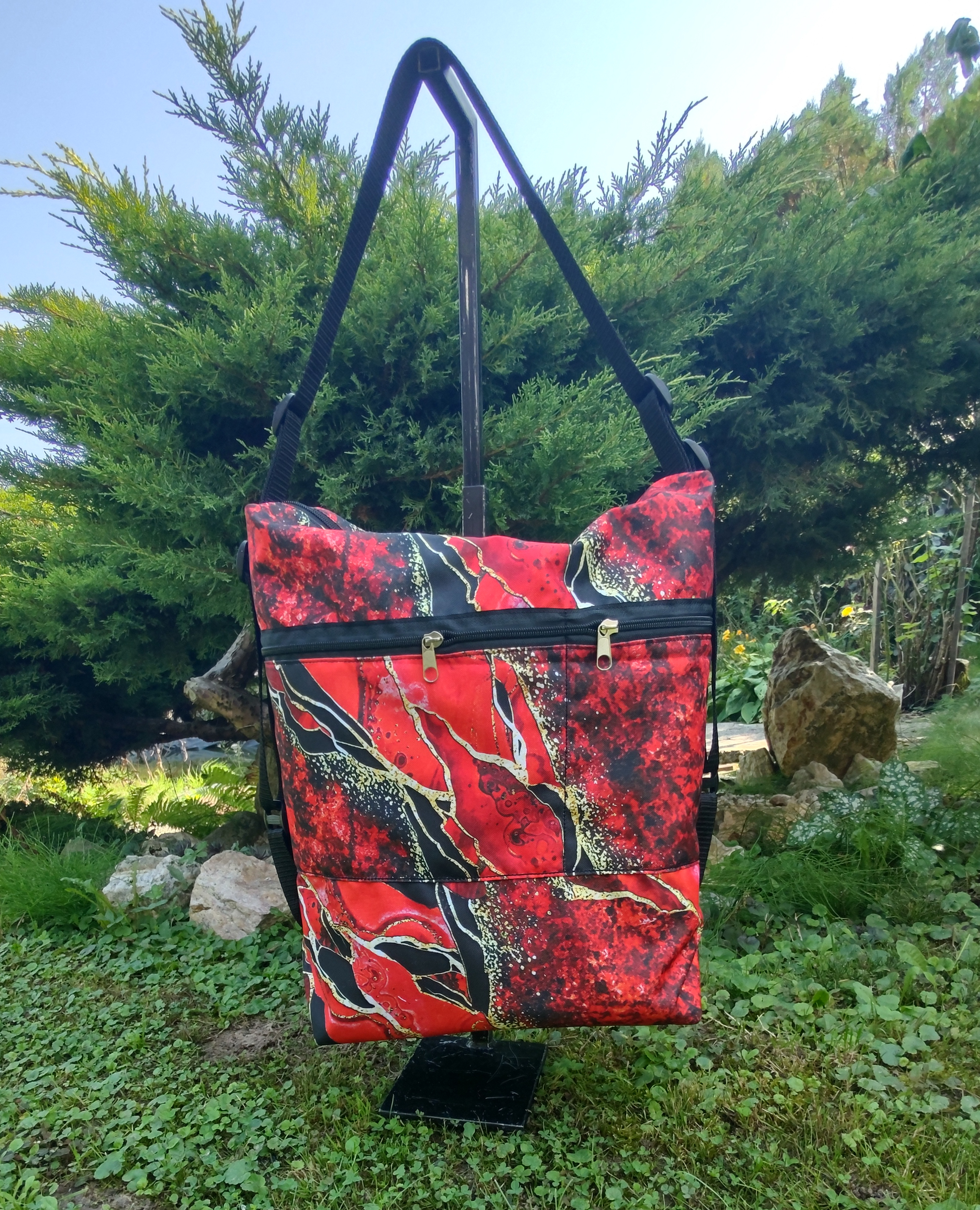 Tissu imperméable - Marbre noir rouge