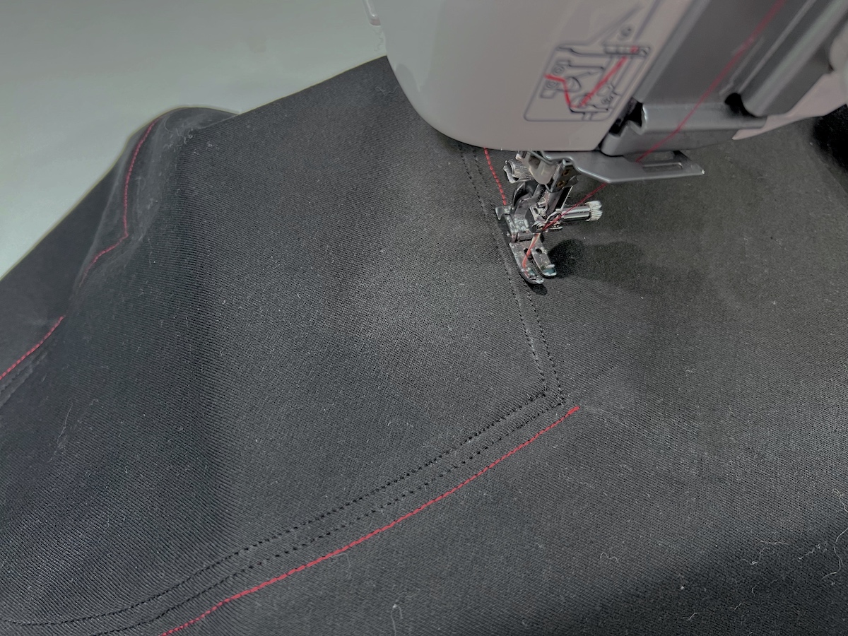 9. Następnie stębnujemy - szyjemy dokładnie po narysowanej linii