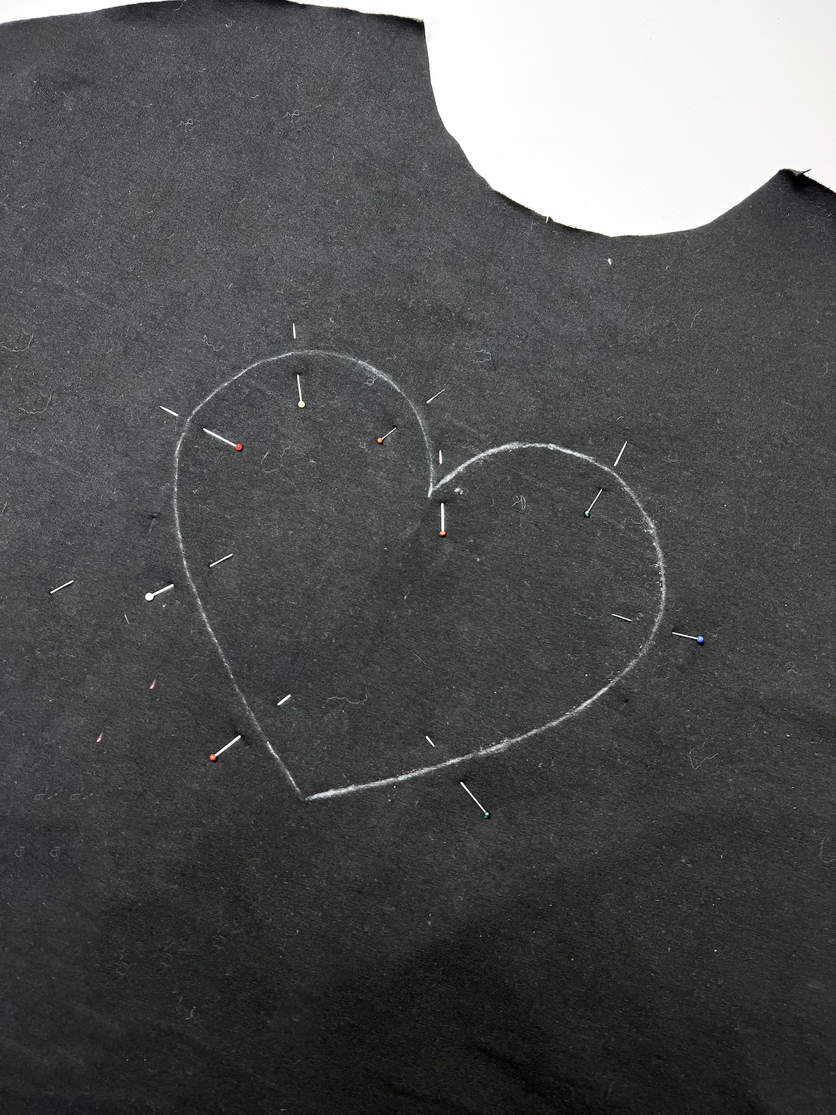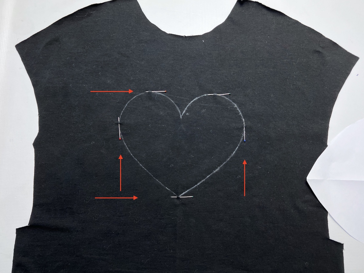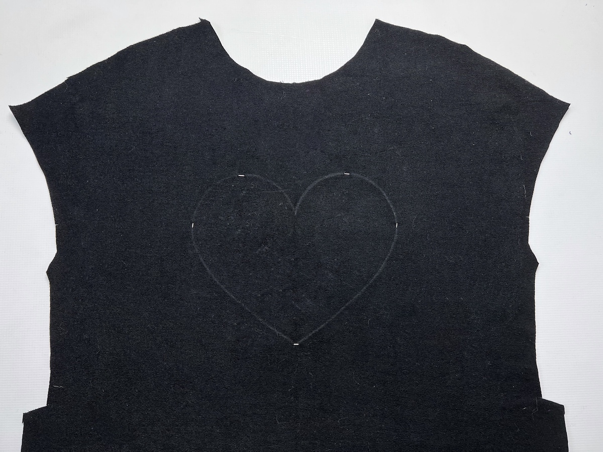 3. Używając mydełka lub pisaka do tkanin (który później można łatwo usunąć) odrysowujemy na prawej stronie kształt aplikacji