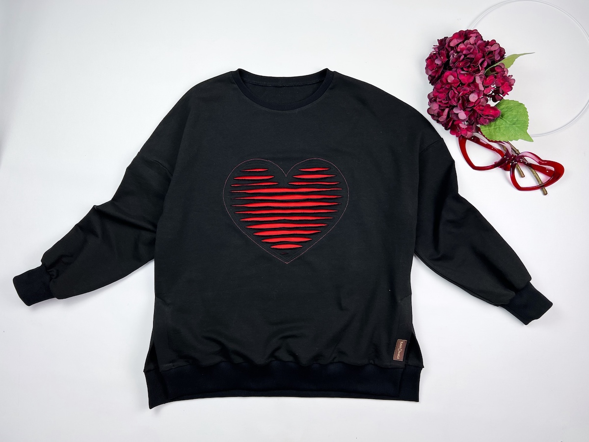 Pozostajemy w klimacie Walentynek. Przygotowaliśmy dla Was bluzę ozdobioną oryginalną aplikacją w kształcie serca. Oczywiście metodę wykonania takiej ozdoby możecie śmiało wykorzystać w inny sposób - stworzyć ciekawe gwiazdy, kółeczka, kwiatuszki itp.