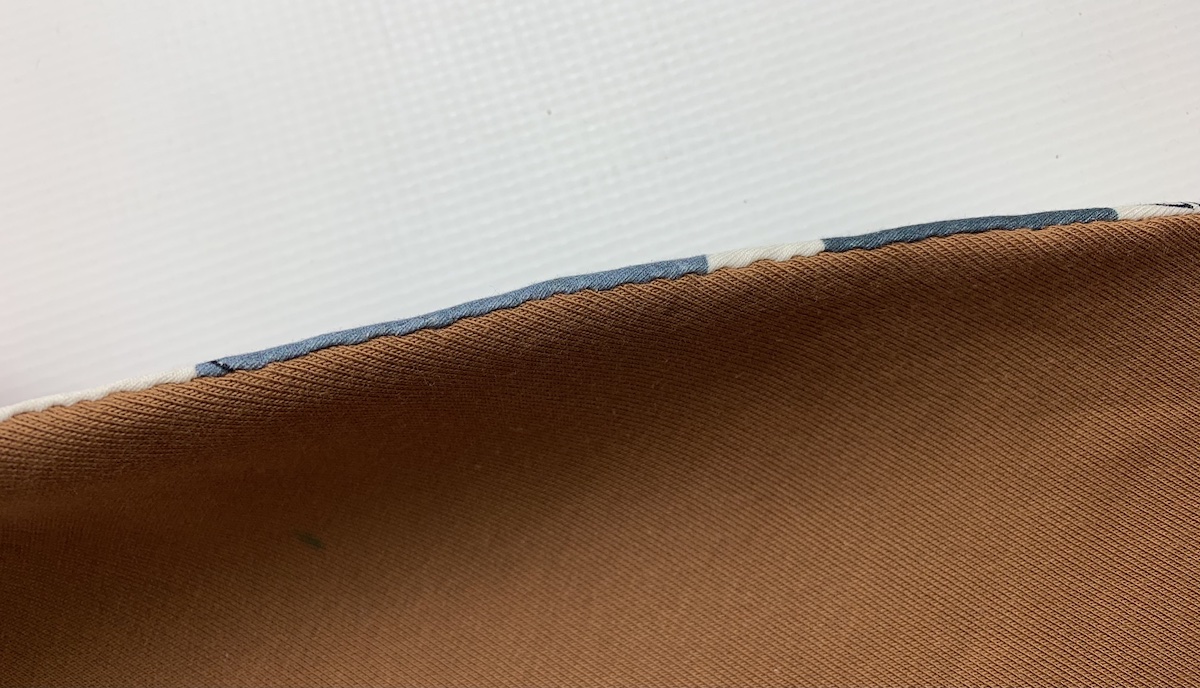 6. Chusta jest dość szeroka i z łatwością można ją związać. Jeśli jednak chcemy w inny sposób ją zapinać należy przed zszyciem całości zamocować niewielką pętelkę (np cieniutką gumkę). Najlepiej zrobić niewielki supełek i w ten sposób przyczepić do ostrzejszego końca chusty. Następnie zszywamy (pkt 5)