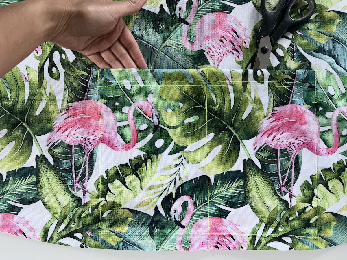 - W tym momencie należy doszyć z przodu kieszonkę
