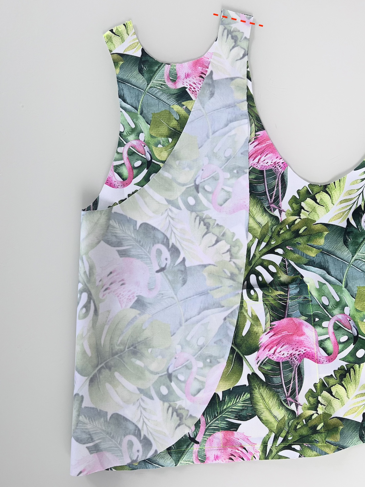 - Łączymy przeciwległe ramiączka i zszywamy