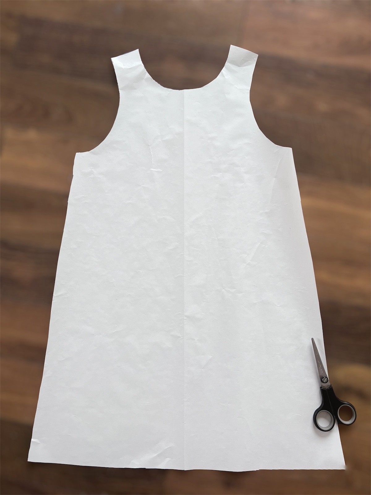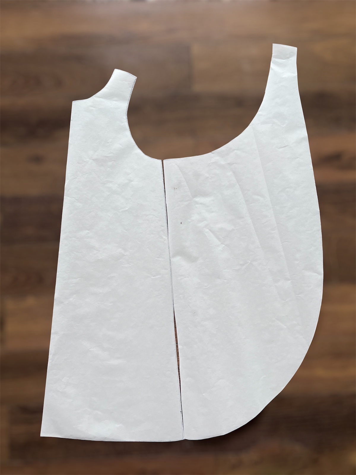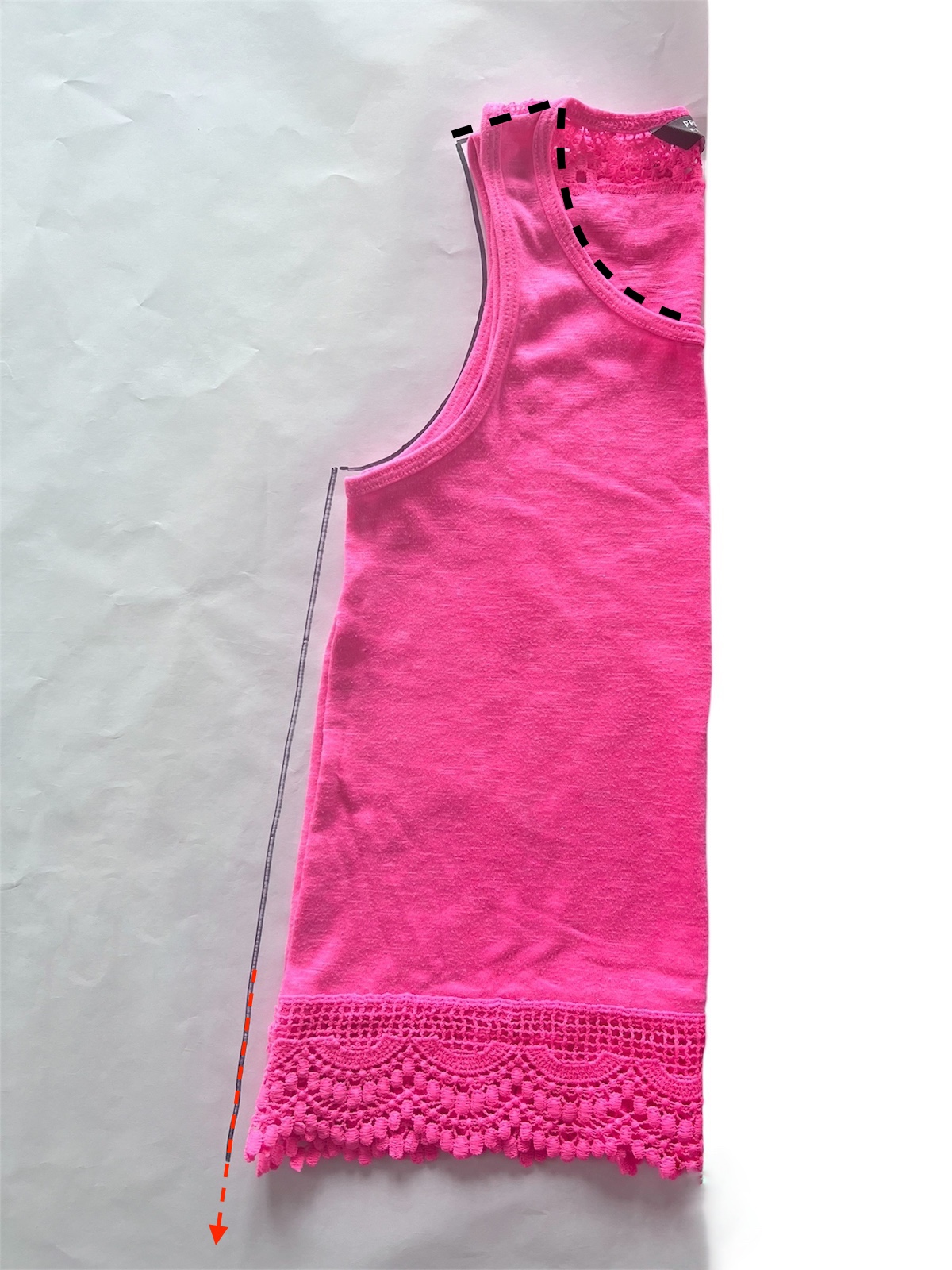 - Wykrój przygotowujemy na podstawie luźnej bluzeczki bez rękawów