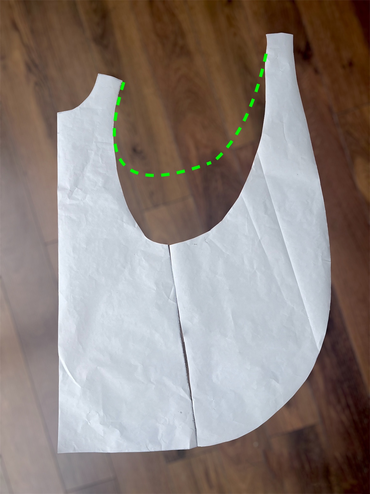 - Wycinamy pamiętając o dodaniu na ramionach zapasu na szew