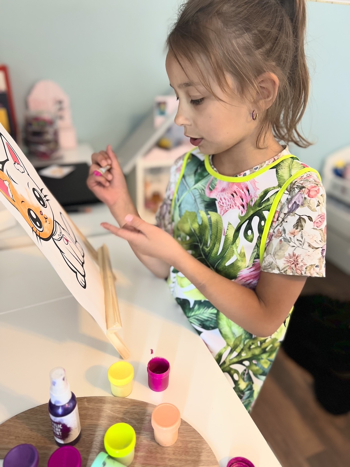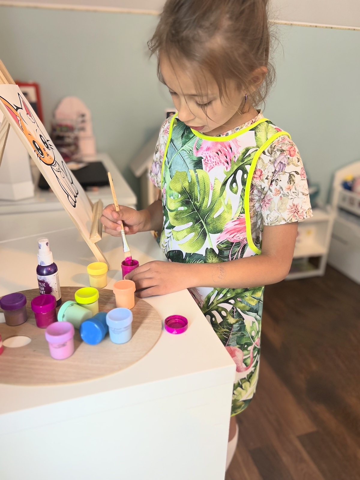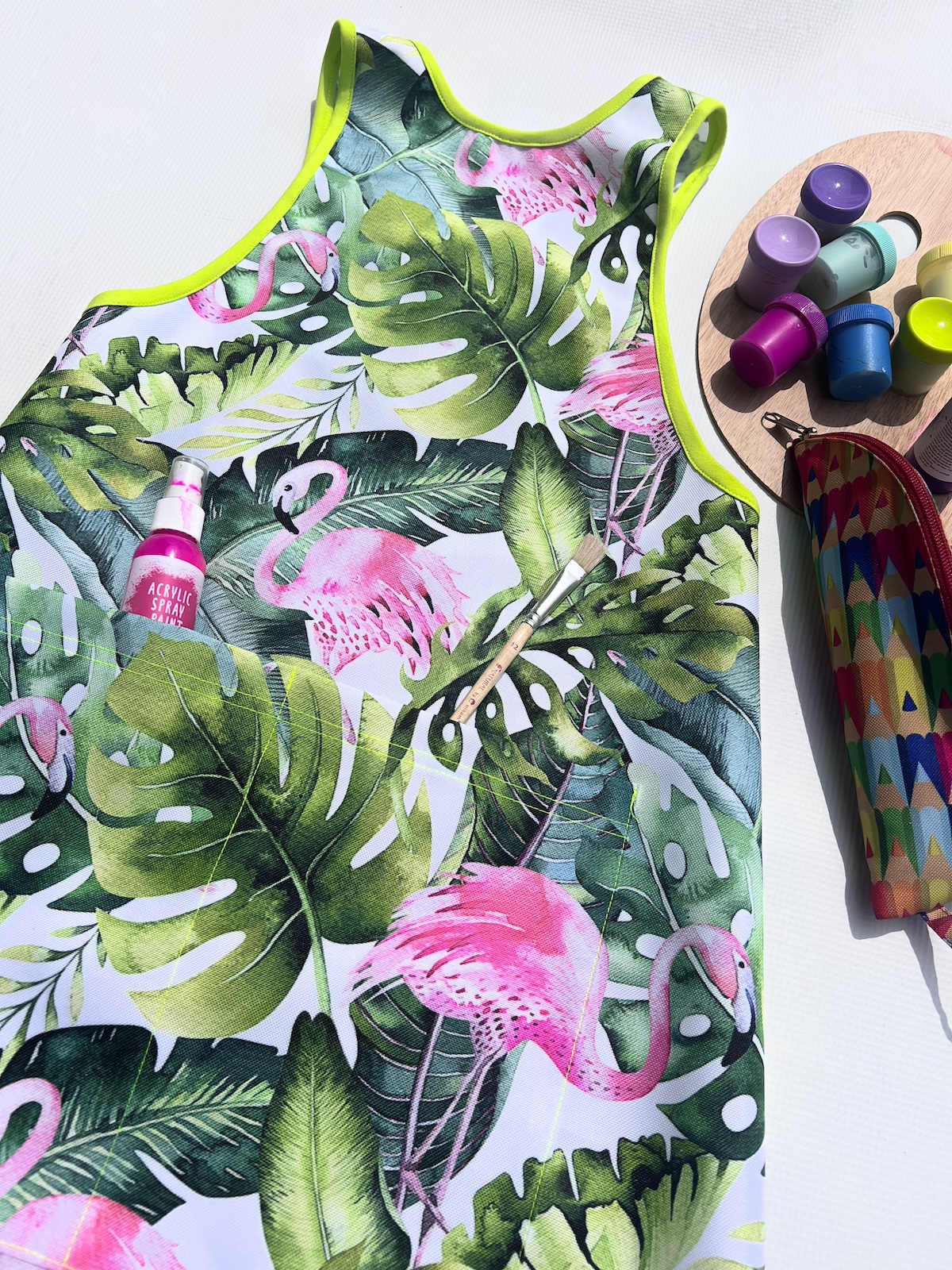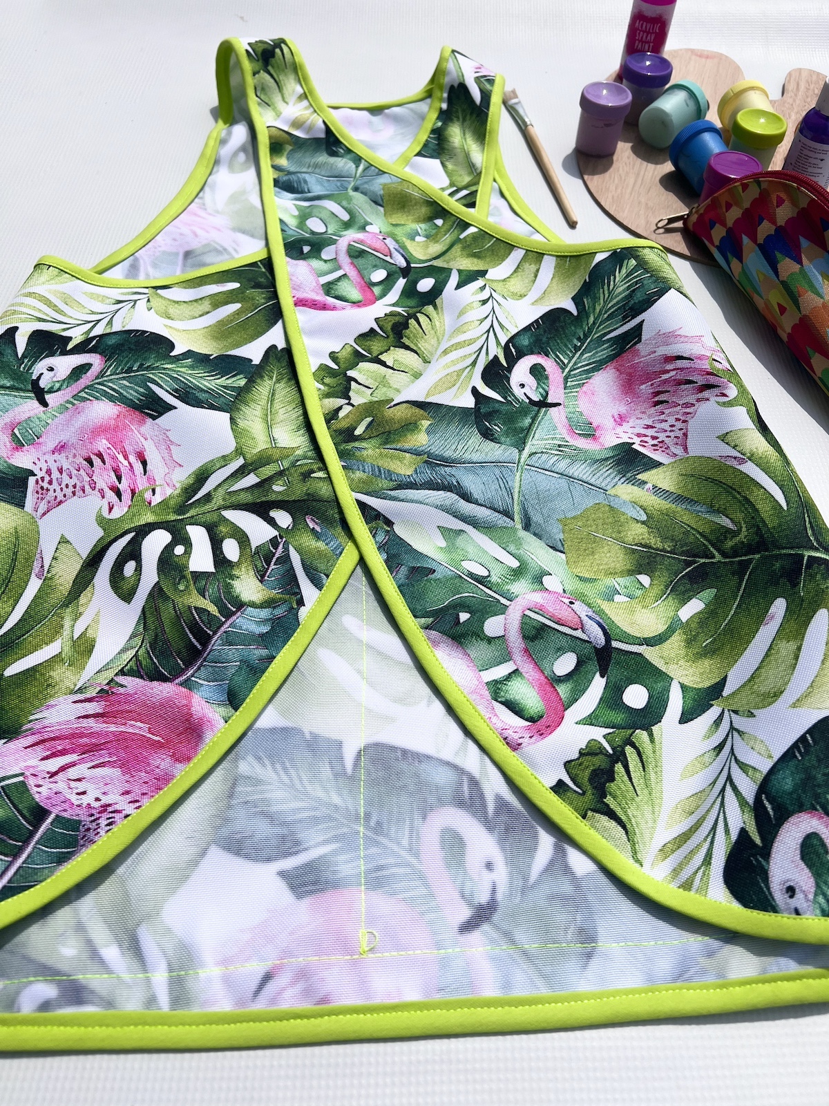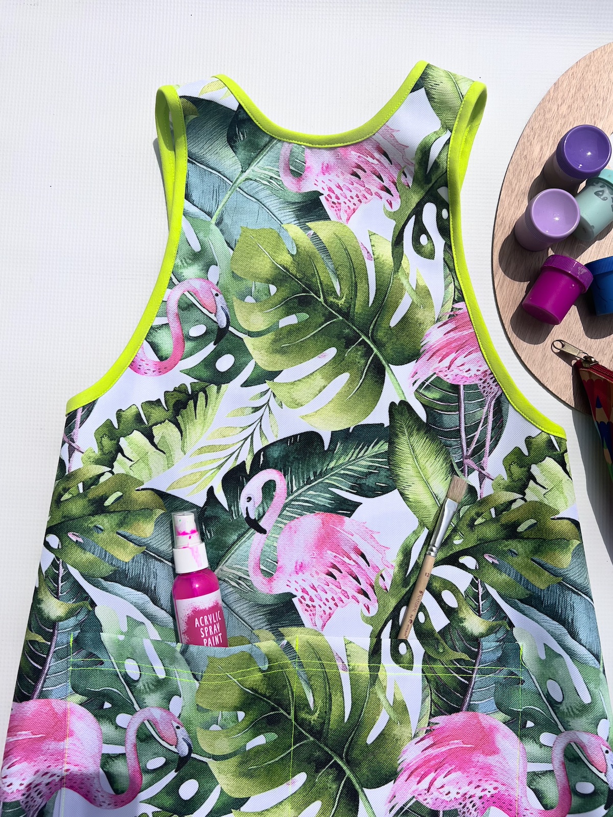 Kolorowy fartuszek, w zależności od wzoru, będzie bardzo przydatny dla małych artystów podczas malowania, przyda się również małym majsterkowiczom oraz tym, którzy próbują swoich sił w kuchni ;) Fartuszek ma z przodu funkcjonalną kieszonkę, nie ma żadnych zapięć czy wiązań, dzięki czemu dzieciaki szybko same go założą. Zapraszamy!