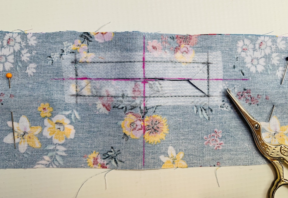 4. Jeśli wrysowane wcześniej linie nie są już widoczne (moje zniknęły pod wpływem temperatury żelazka) - ponownie je nakreślamy (połowa szerokości i 3 cm od góry)