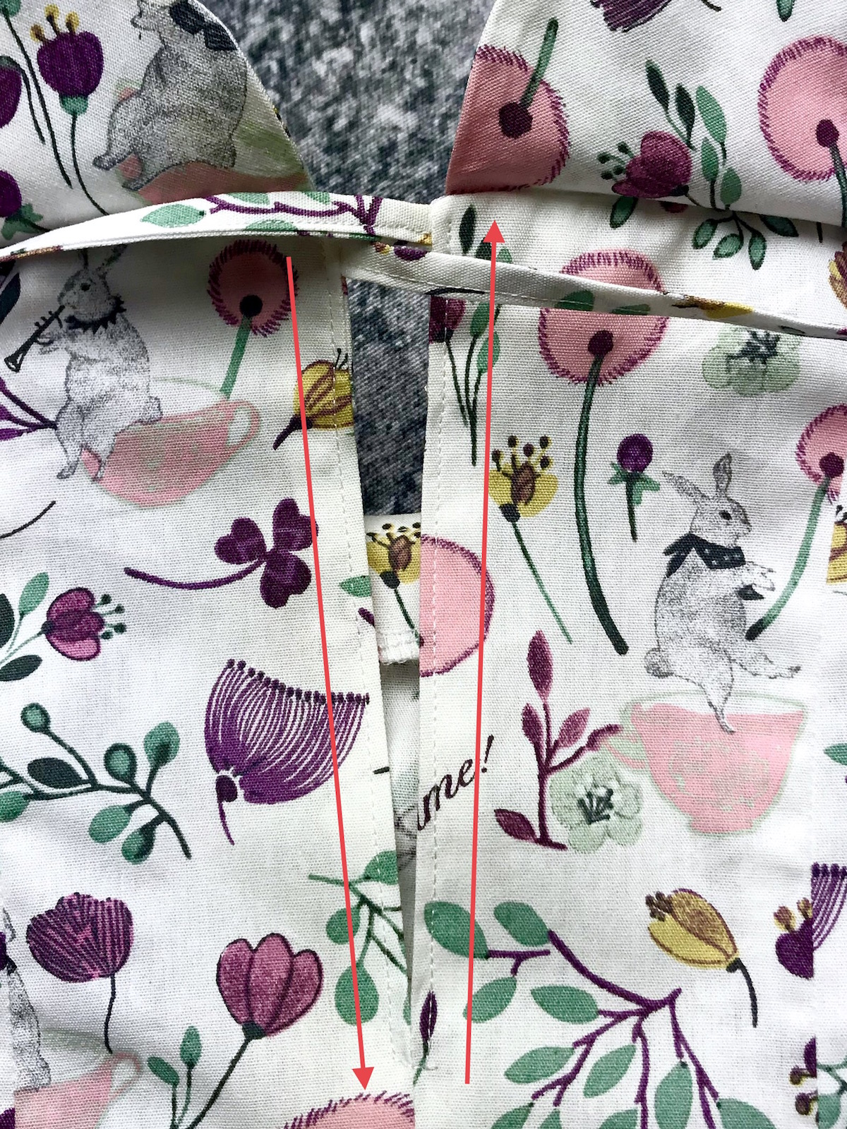 29. Odszycie pach - w tym momencie warto zaznaczyć sobie tył odszycia - czyli ten bardziej wystający kawałek. Końce odszycia składamy ze sobą, zszywamy i rozprasowujemy