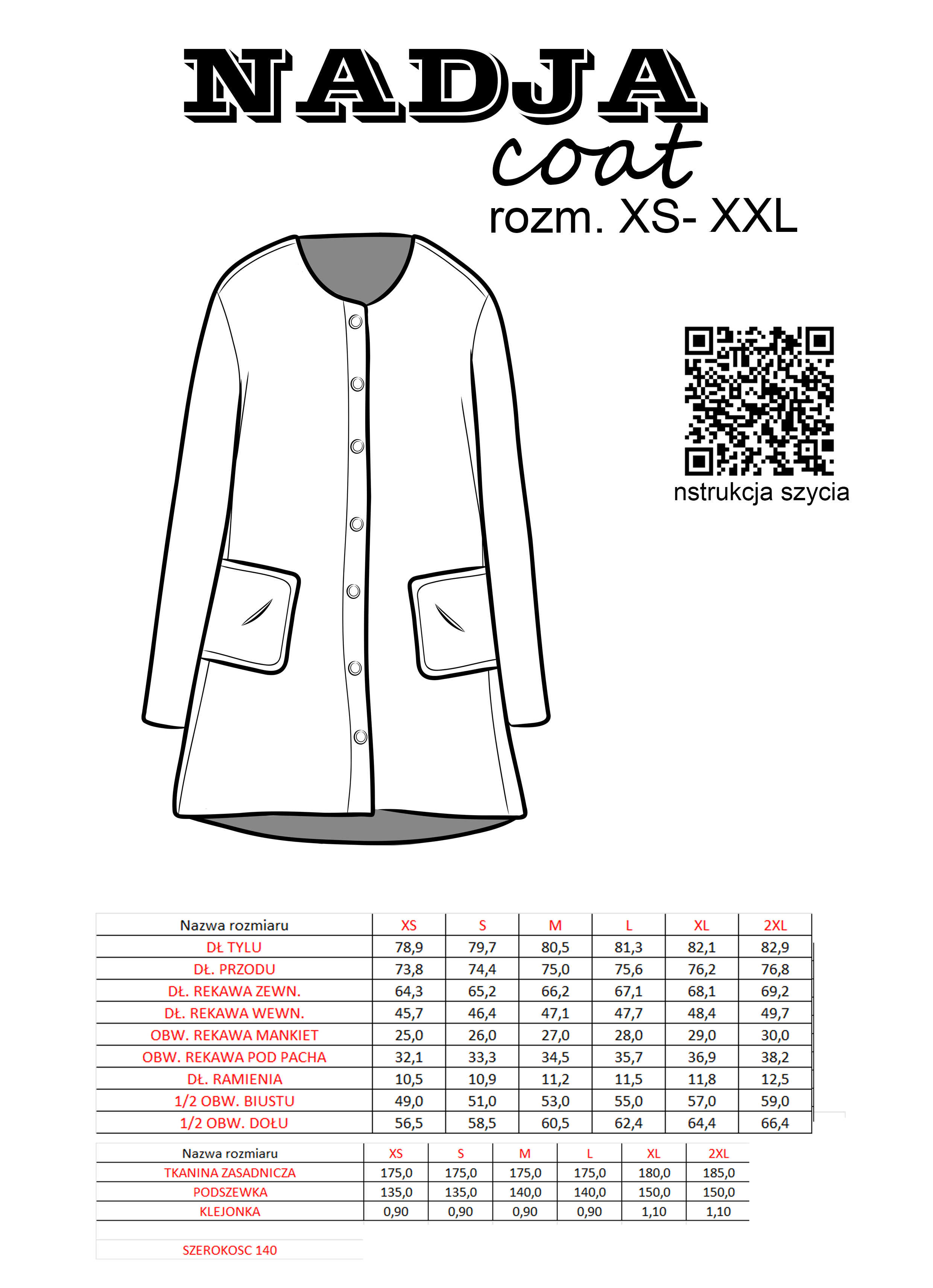Nadja Coat - wykrój PAPIEROWY na damski płaszcz - rozm. XS - XXL