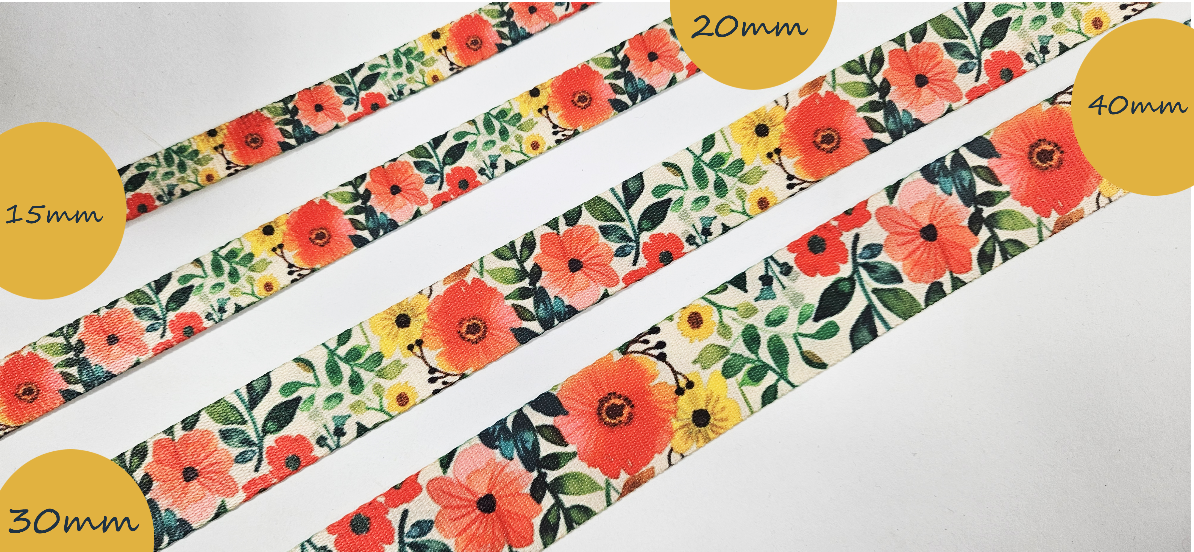 Na specjalne zamówienie Klienta możemy wyprodukować taśmę nośną o szerokości 15, 20,25,30,38 mm. Taśma z dwustronnym nadrukiem, odporna na warunki atmosferyczne a jednocześnie plastyczna i miekka tak by można było z niej uszyć szelki, wąskie smycze czy obroże.